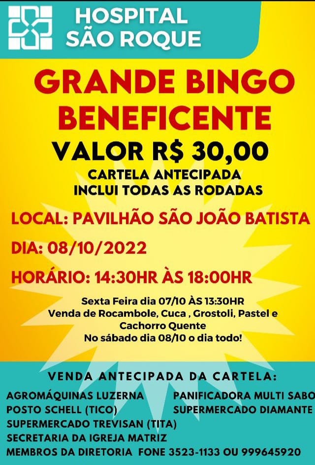O Hospital São Roque de Luzerna, realiza Bingo Beneficente.
