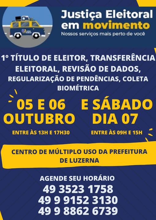 Sexta e Sábado atendimento da Justiça eleitoral em Luzerna no Centro Multiplo Uso.
