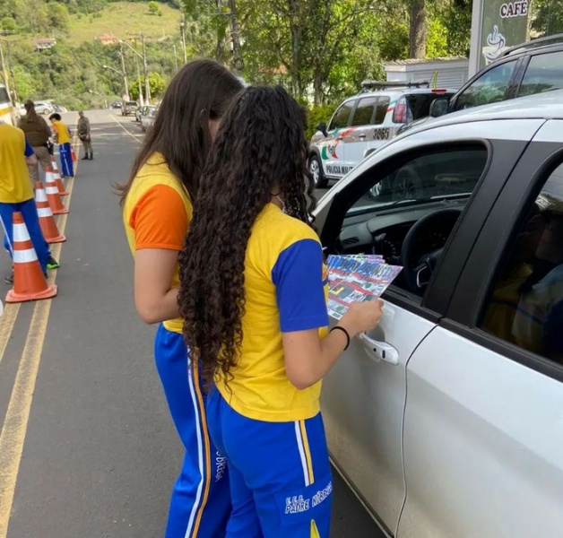Durante a ação, os alunos entregaram aos motoristas panfletos com orientações sobre regras de segurança no trânsito objetivando a conscientização das pessoas sobre a importância de cada condutor e pedestre na conquista de um trânsito mais seguro para todos.