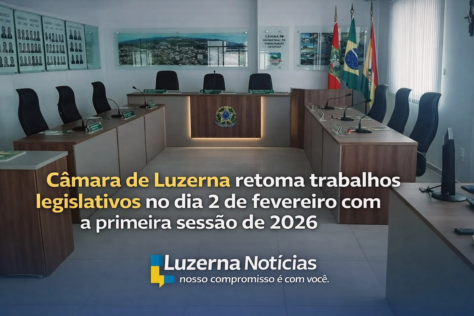 A Câmara Municipal de Luzerna dará início aos trabalhos legislativos de 2026 no próximo dia 02 de fevereiro, com a realização da 1ª Sessão Ordinária do ano.