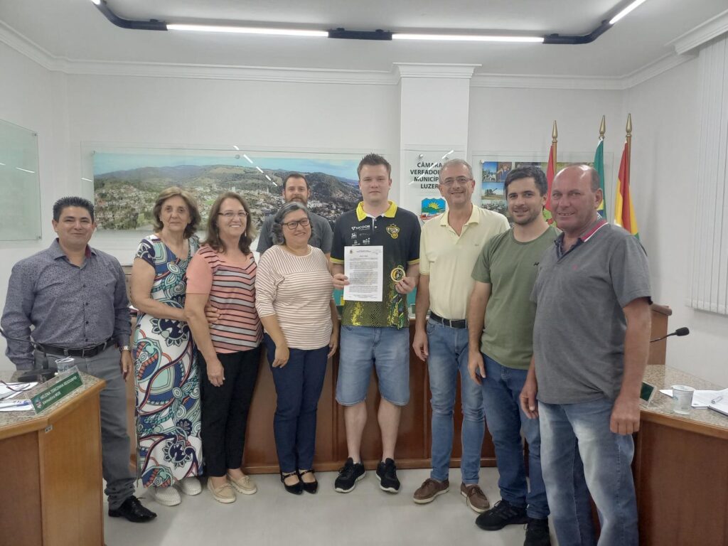 Em 28/11, durante os trabalhos da 40ª Sessão Ordinária de 2022, a Câmara de Vereadores do Município de Luzerna, por iniciativa de todos os Vereadores e Vereadoras, concedeu Moção de Aplauso ao atleta Luzernense WILLIAN SCHEUERMANN, nos seguintes termos: