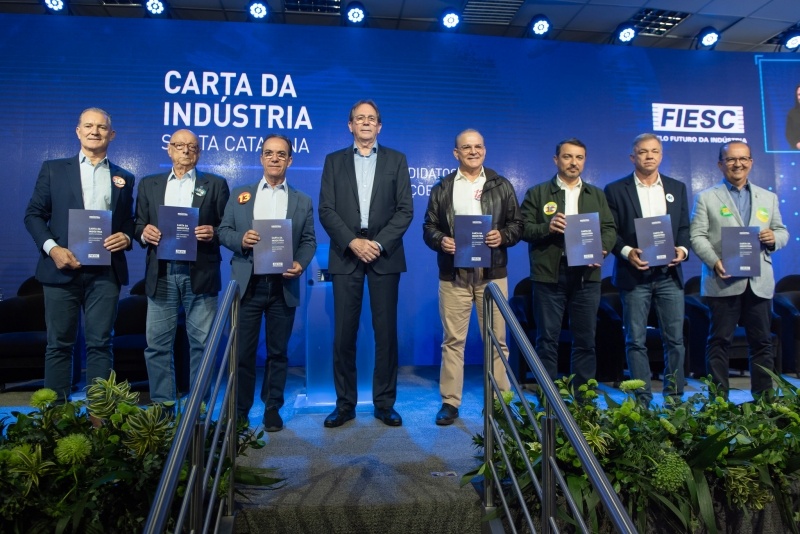 Os candidatos ao governo de Santa Catarina com representação na Assembleia Legislativa assinaram um documento em que firmaram com os industriais catarinenses o compromisso, caso eleitos, de valorizar a indústria, não aumentar a carga tributária e melhorar a infraestrutura de transportes. Esses temas integram os fundamentos da Carta da Indústria 2022, documento que norteou o Diálogo com os Candidatos, evento promovido pela Federação das Indústrias (FIESC), nesta quinta-feira, dia 22, em Florianópolis.