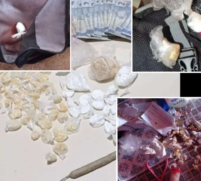 Durante fiscalização da Polícia Civil, com o apoio da Polícia Militar, foram apreendidas mais de 60 porções de cocaína fracionada e pronta para a venda, seja em forma de pedras de crack ou pura, além de dinheiro, balança e invólucros para o fracionamento em uma boate.