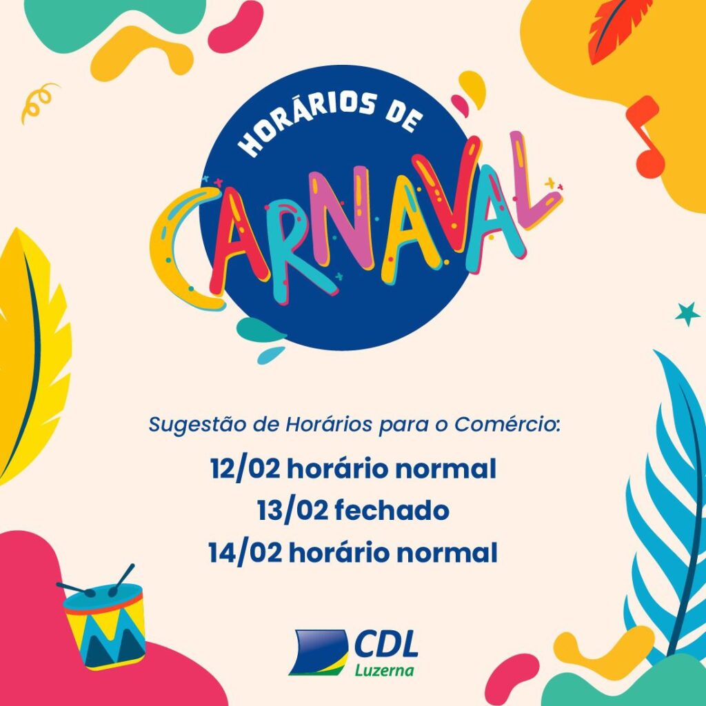 A diretoria da Câmara de Dirigentes Lojistas de Luzerna (CDL), já definiu o calendário de funcionamento do comércio durante o período de carnaval. As lojas associadas farão horário especial de atendimento com objetivo de facilitar as compras e movimentar a economia local.