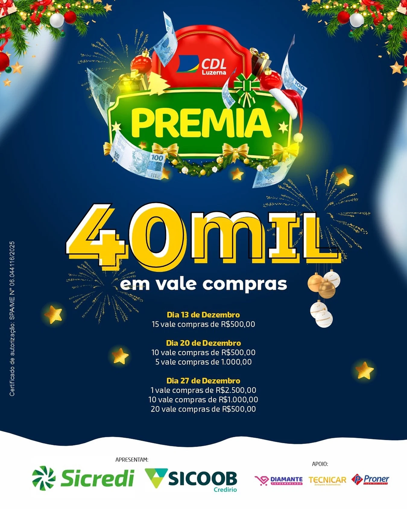 20 de dezembro: 10 vales-compras de R$ 500,00 e 5 de R$ 1.000,00