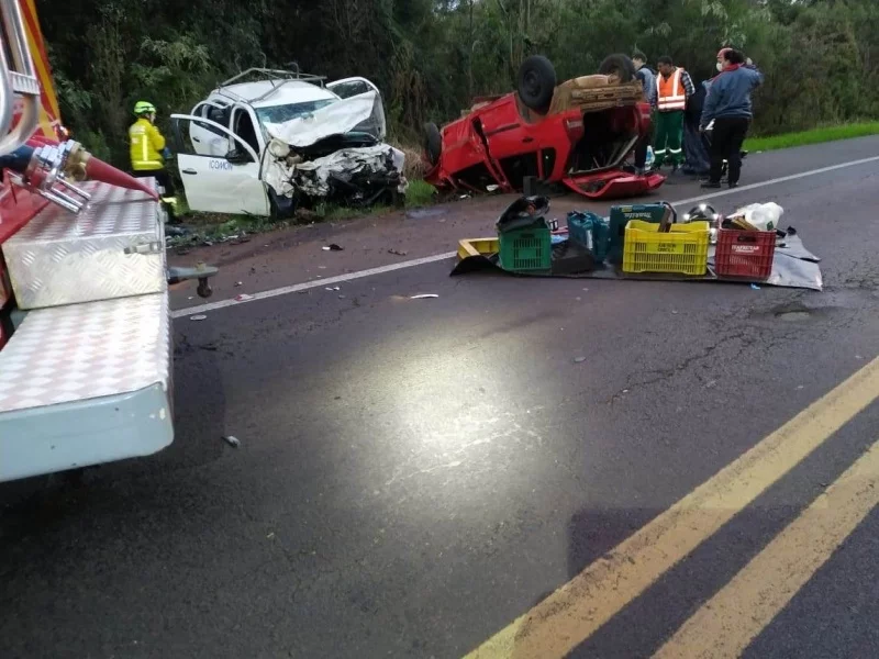 Três pessoas morreram em uma batida frontal entre dois Volkswagen Gol no início da manhã desta quinta-feira (20) na BR-282, trecho entre os municípios de Vargeão e Ponte Serrada.