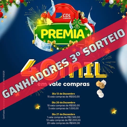 Confira os ganhadores do quarto sorteio do CDL PREMIA, que sorteou R$40.000,00 em prêmios em Luzerna!