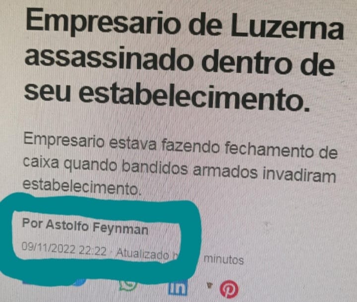 Além do título da matéria, também constava a descrição que o Empresário estava fazendo fechamento de caixa, quando bandidos armados invadiram seu estabelecimento.