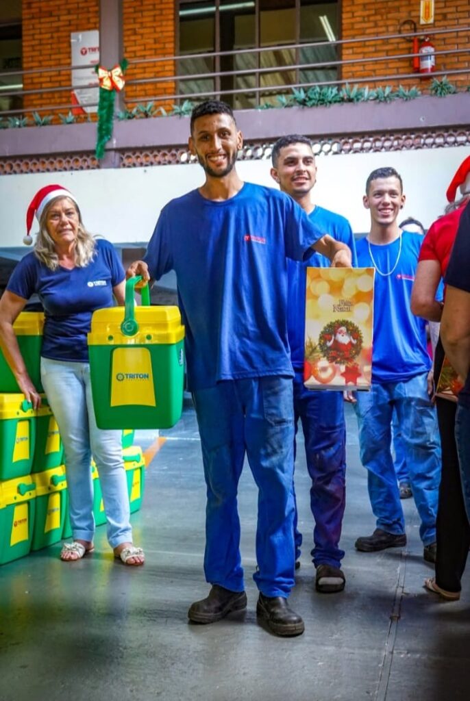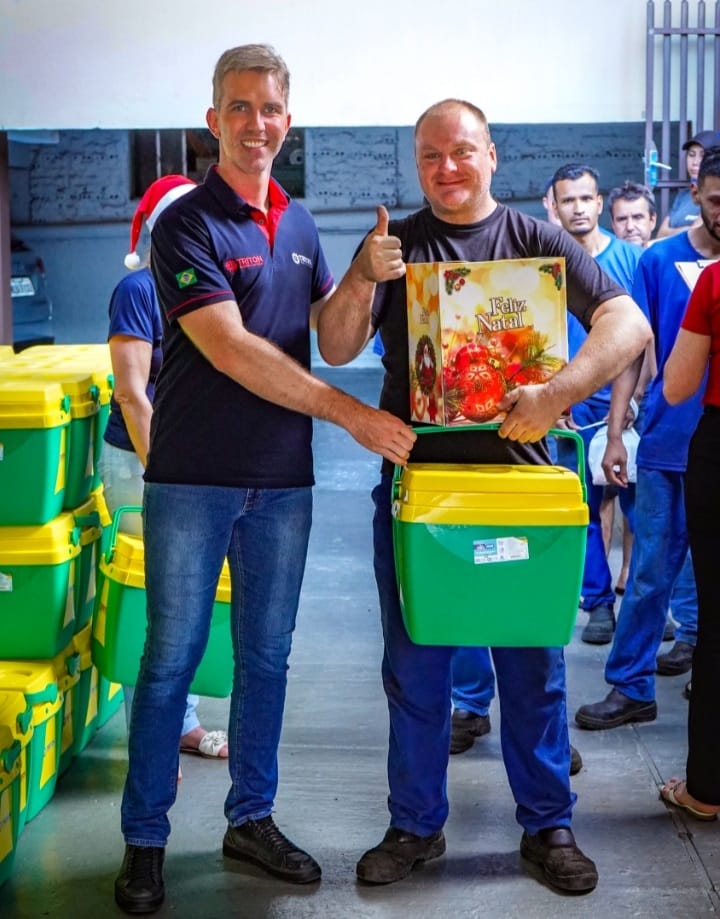 A Empresa Triton Máquinas Agrícolas, e Triton Fertilance, antes do recesso de final de ano realizou nesta quinta feira a entrega de 250 cestas de natal aos seus colaboradores. O momento é uma maneira de agradecer aos seus colaboradores por mais um ano de trabalho e mostrar que a empresa se importa com seu bem estar e com o de sua família, destacou o diretor Márcio Luis Dalla Lana.