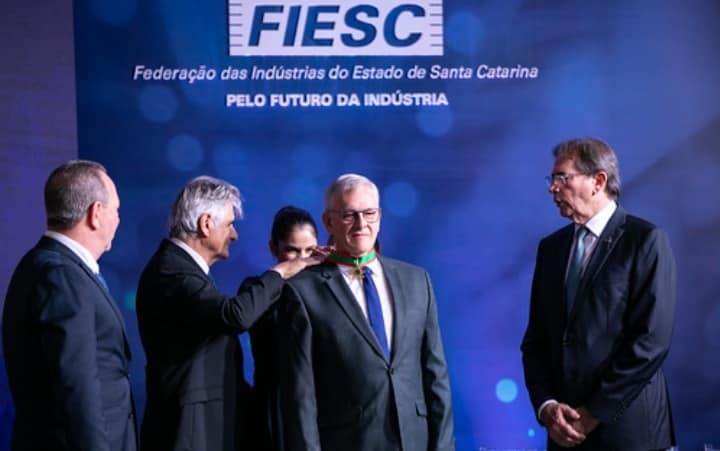 Nesta sexta-feira, da 19, a Federação das Indústrias (FIESC) realizou a cerimônia de entrega da Ordem do Mérito Industrial de Santa Catarina para os empresários Ademir Luiz Dalla Lana, (Luzerna),Gilberto Tomazoni, Maitê Lang, Milton Hobus, Valdir Moretto, além de Carlos Rodolfo Schneider, que recebeu a Ordem do Mérito Industrial da CNI, a comenda máxima da indústria nacional.