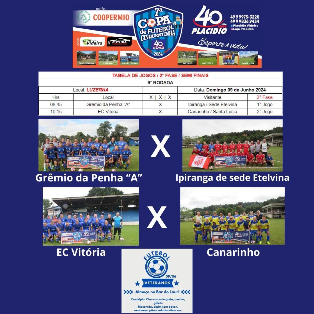 A equipe do Esporte Clube Vitória está na semifinal,da 7ª Copa Placídio de Futebol cinquentinha,que contou com a participação de oito equipes da região.