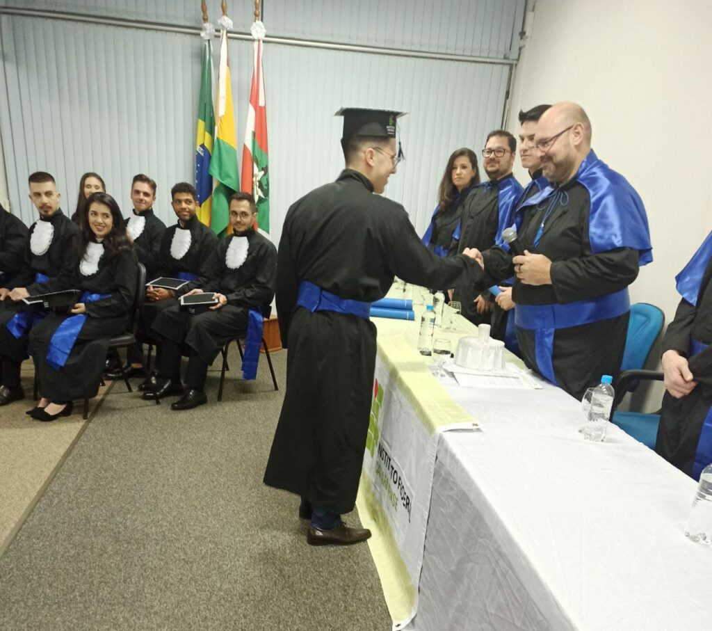A noite marcou um encerramento de um ciclo importante na vida dos acadêmicos. Na ocasião, o diretor geral do Campus Luzerna, Eduardo Butzen, representou a Reitora do IFC, e conferiu o Grau para aos seguintes alunos: