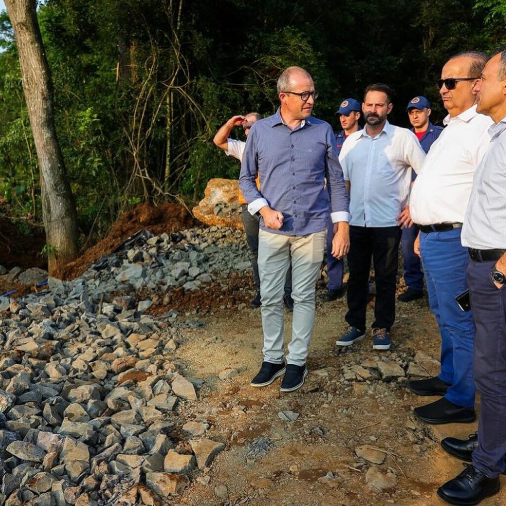 O governador e sua comitiva, percorreu alguns locais que tiveram estragos consideráveis devido as fortes chuvas em Luzerna.