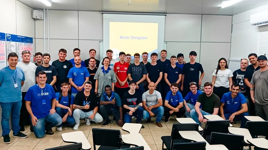 As visitas contemplaram turmas de diferentes áreas: 34 alunos de Mecânica do Senai Concórdia, 25 alunos de Planejamento e Controle da Produção (PCP) do Senai Luzerna, outros 20 estudantes de Mecânica também do Senai Luzerna, 18 alunos de Eletromecânica do Senai Videira e 10 estudantes de Mecânica do IFC Luzerna.