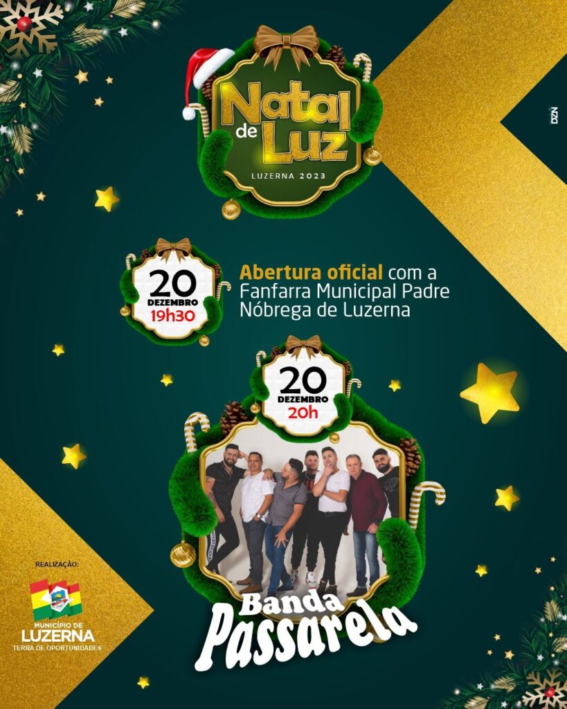 19:30h – Abertura oficial com a Fanfarra Municipal Padre Nóbrega de Luzerna