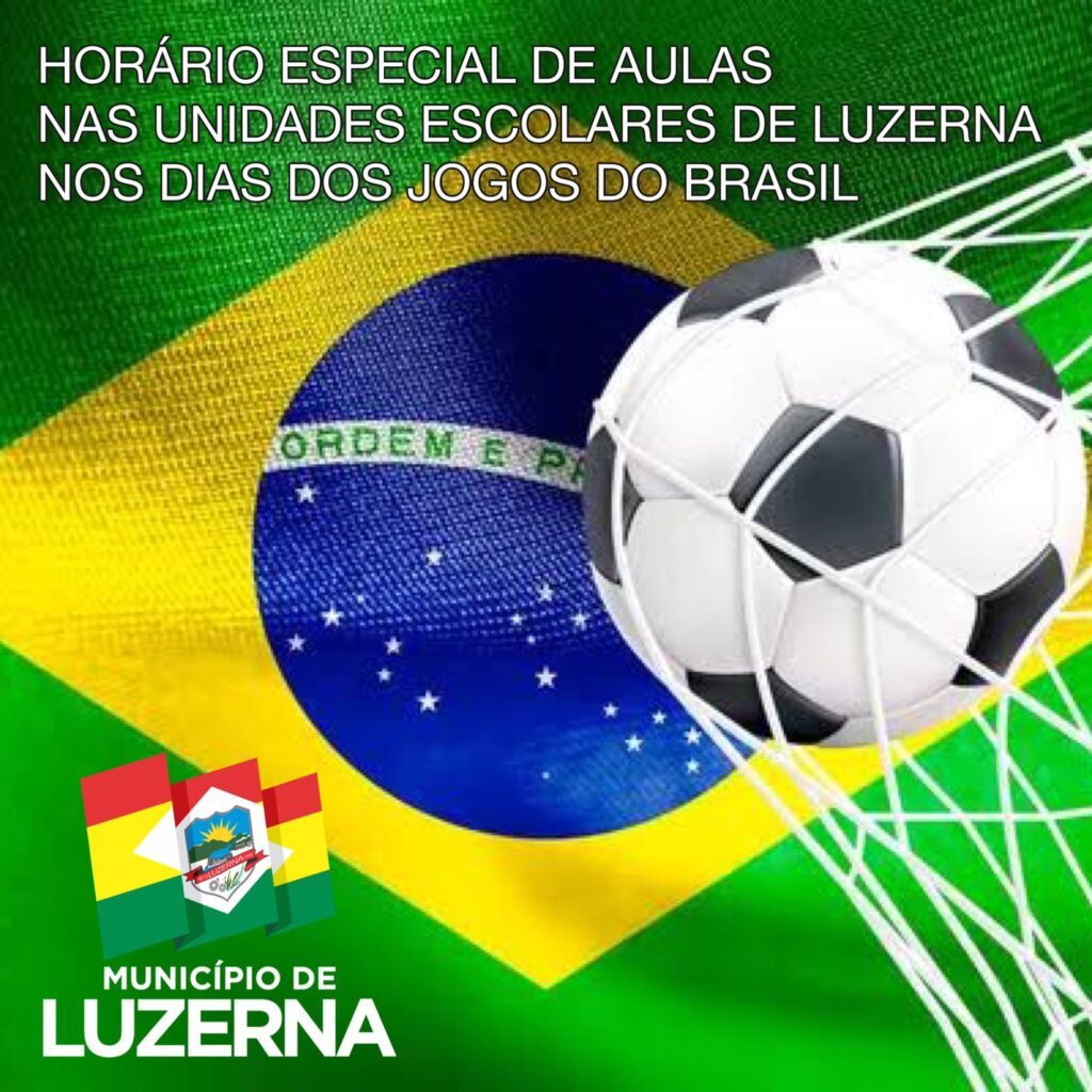 Art.1º-Fica decretado horário especial de aulas nas Unidades da Escola Municipal São Francisco de Luzerna, nos dias dos jogos da Seleção Brasileira de futebol, conforme cronograma a seguir: