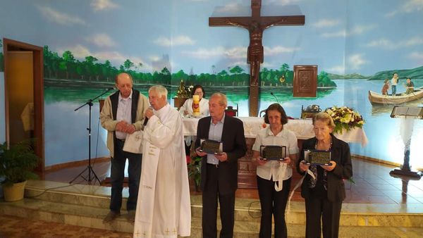 Fundadores da Igreja Católica da Estação Luzerna, foram homenageados na festa do Apostolado da Oração,que ocorreu neste domingo dia 30 de Abril.