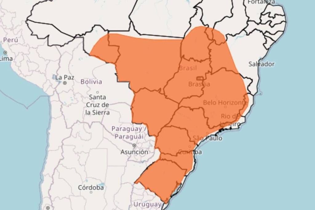 Ao todo, serão 3.352 municípios atingidos, segundo a previsão. A onda vai afetar toda a área de Mato Grosso do Sul, Goiás e Distrito Federal. Outros estados com alerta são Tocantins, Rondônia, Maranhão, Piauí, Bahia, Espírito Santo, Rio de Janeiro, São Paulo (incluindo a capital), Minas Gerais, Paraná, Santa Catarina, Rio Grande do Sul e Mato Grosso.