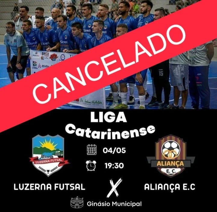 Em virtude das condições climáticas,e de haver muita umidade na quadra do ginásio de esportes Antonio Brandt em Luzerna,o Jogo entre Luzerna Futsal e Aliança de Santa Cecilia ,pela Série Prata foi cancelado,uma nova data será marcada para a disputa.