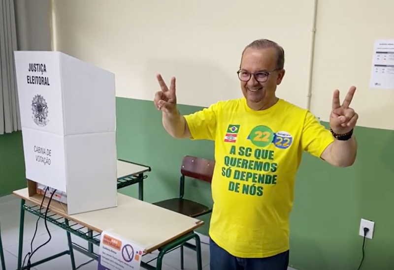 O candidato ao Governo de Santa Catarina pelo Partido Liberal, Jorginho Mello, votou na manhã deste domingo (30) para o segundo turno desta eleição.