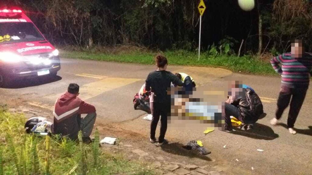 Uma queda de motocicleta foi registrada na noite desta segunda-feira (14) na rua Nereu Ramos (Rodovia do Ovo) em Herval d’ Oeste. Por volta das 19h20 o Corpo de Bombeiros foi acionado e, em frente a uma creche canina, no bairro Estação Luzerna, foi encontrada uma jovem de 18 anos, carona do veÃculo, caÃda em via pública com dores na perna esquerda, ferimento no calcanhar esquerdo e suspeita de entorse no tornozelo esquerdo.