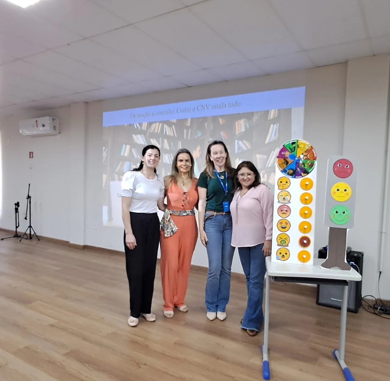 A voluntária relata que os professores também avaliaram o impacto das próprias comunicações no ambiente de trabalho ou de casa. “Refletimos como muitas vezes, acabamos impondo nossos interesses nas nossas relações e não praticamos a escuta ativa, a empatia e o respeito. Foi um momento valioso de aprendizado e conscientização para todos”, finaliza