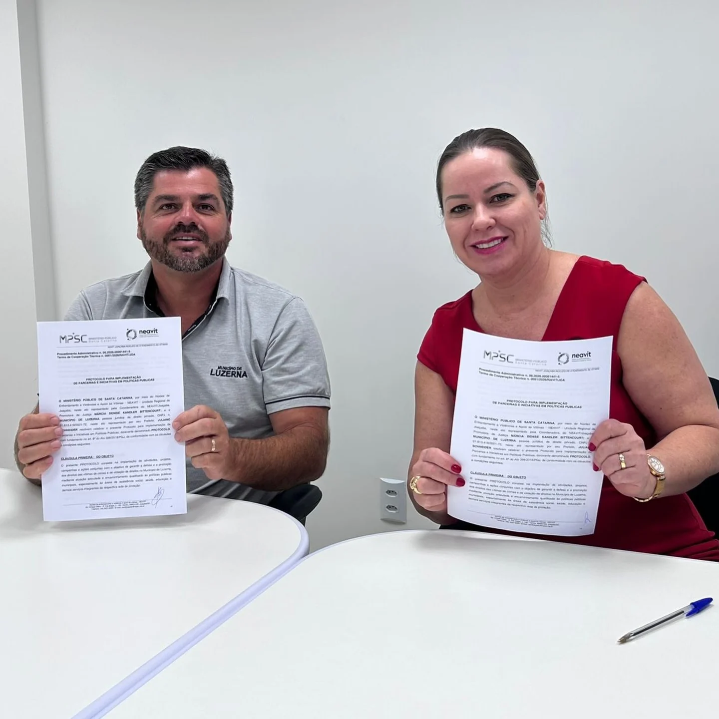 O município de Luzerna é o primeiro da região a firmar um termo de cooperação com o Ministério Público de Santa Catarina, por meio do Núcleo Regional de Enfrentamento a Violências e Apoio às Vítimas, recém-instalado em Joaçaba.
