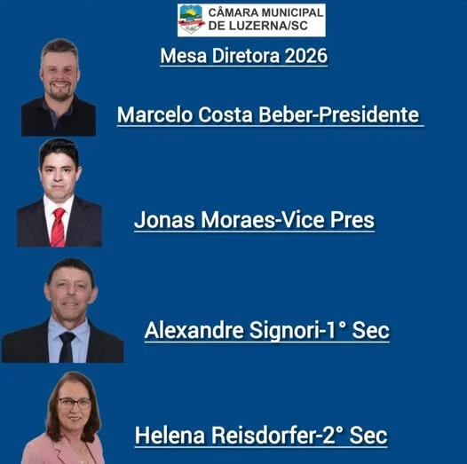 A Câmara de Vereadores de Luzerna elegeu, na noite desta segunda-feira, 8 de dezembro, a nova Mesa Diretora que comandará o Legislativo em 2026. A eleição foi marcada por disputa acirrada entre duas chapas: a chapa Costa Beber, que acabou eleita, e a chapa de Matheus Reimann.