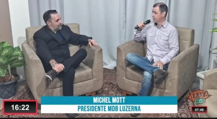 Nesta quinta-feira dia (25) esteve em nossa bancada, o presidente do MDB de Luzerna Michel Mott,na série de entrevistas com os presidentes de siglas partidárias .