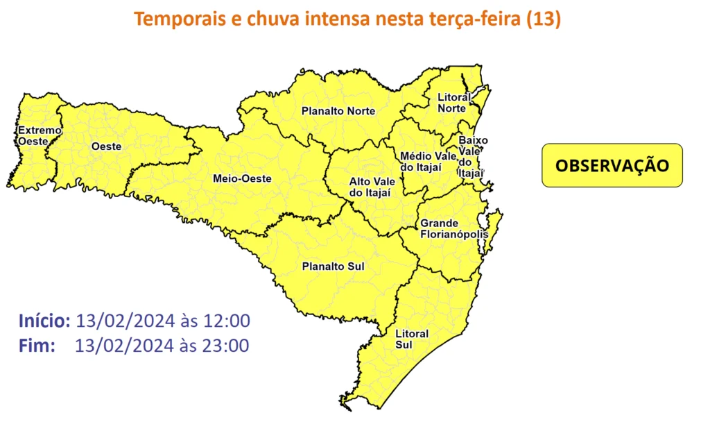Na terça-feira (13) as instabilidades aumentam em Santa Catarina, devido a aproximação de uma frente fria.