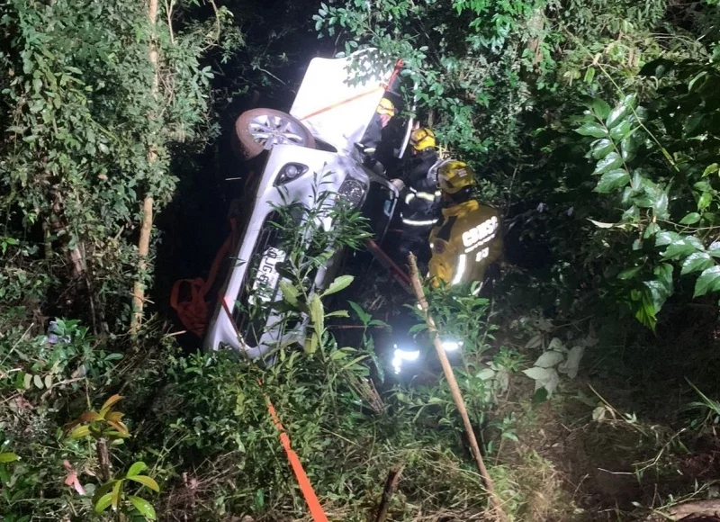 Uma mulher de 45 anos foi resgatada pelos Bombeiros no início da manhã desta segunda-feira (19) após despencar com o veículo em uma ribanceira no interior de Herval d´Oeste. A vítima conduzia um Nissan/March, que saiu da estrada por volta das 6h na Linha Santa Terezinha.