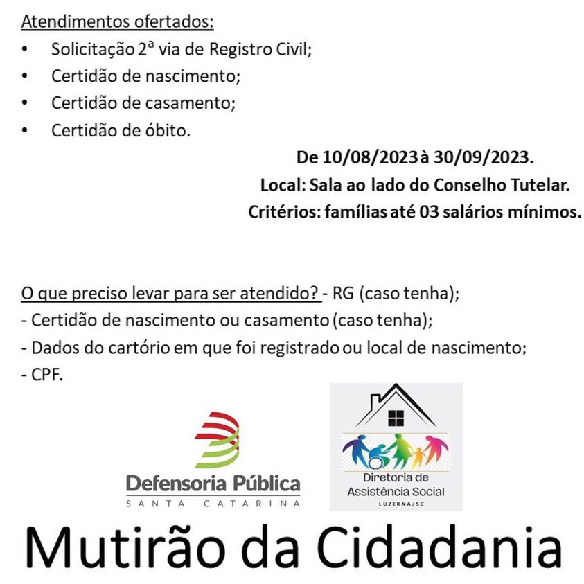 – Após o dia 30/09, serão encaminhados os documentos para a defensoria que irá proceder a documentação.