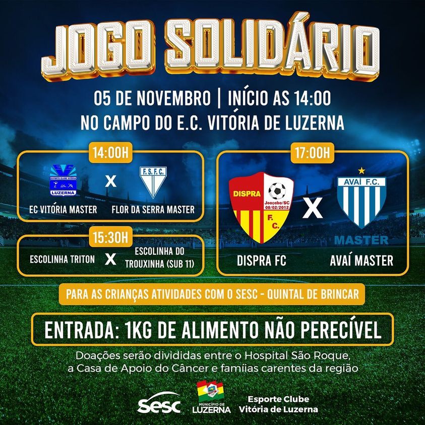 Neste sábado no Campo do Vitória em Luzerna acontece mais um jogo solidário.