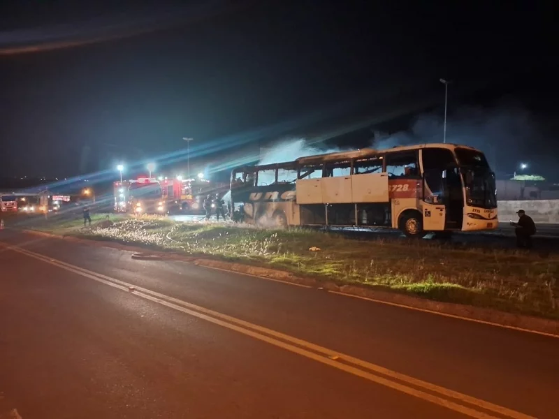 O ônibus já estava tomado pelas chamas quando o Corpo de Bombeiros chegou ao local. Segundo a equipe, o fogo tinha maior intensidade na parte traseira, onde fica o motor.