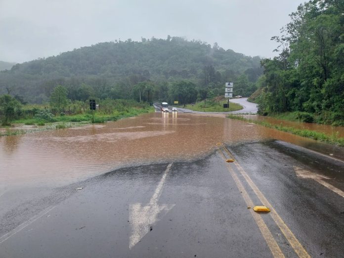 Joaçaba – SC 150 KM 89 – Alagamento – Trânsito liberado – Aquaplanagem nas duas pistas