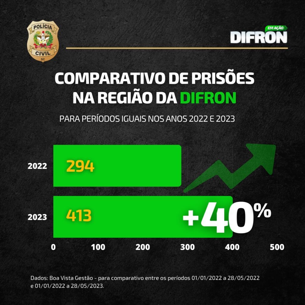 Para o Diretor de PolÃcia da Fronteira, delegado Fernando Callfass, os números de prisões realizados na região oeste são extremamente positivos, comprovando o total comprometimento de todos os policiais civis e demais colaboradores com as diretrizes e metas alinhadas com o delegado-geral da PolÃcia Civil de Santa Catarina, Ulisses Gabriel.