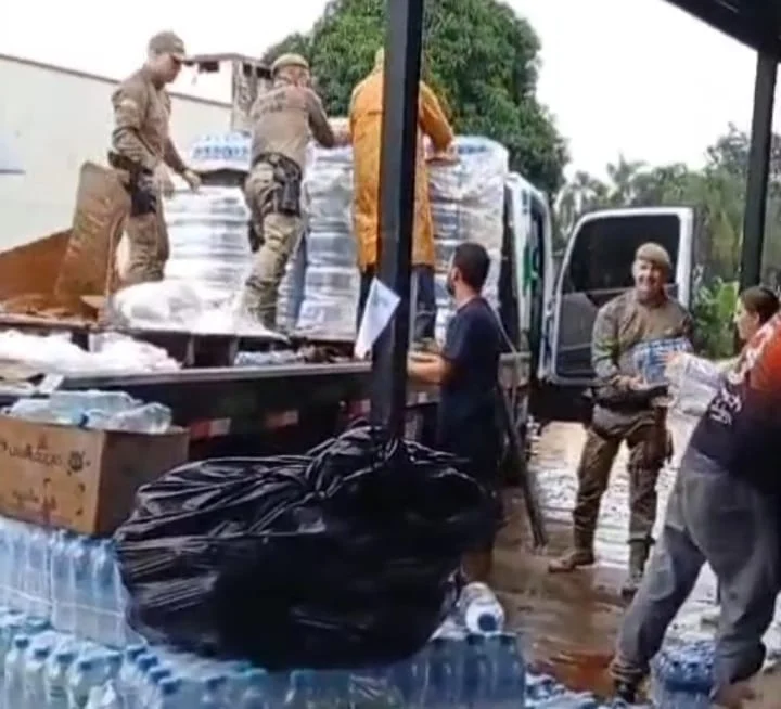 Na oportunidade os militares, levaram 5 mil kg de donativos entre água,colchão, ração para pet,os policiais também deram suporte no local a defesa civil, e aos moradores.
