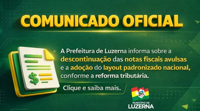 Prefeitura de Luzerna informa que, a partir de janeiro de 2026, as notas fiscais avulsas serão descontinuadas