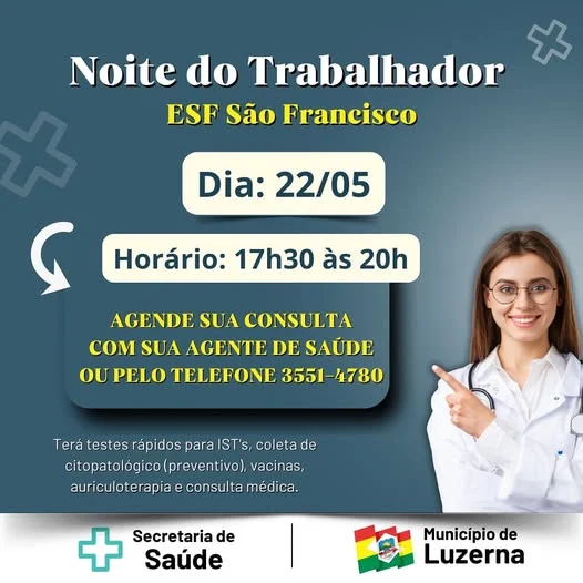 A rede pública oferece como opção de atendimento o ‘Saúde do Trabalhador’, um projeto que consiste em todas as unidades do município de Luzerna e permanecerem abertas uma vez por mês,com horário estendido até as 20:00h, para atendimento dos pacientes que trabalham o dia todo.