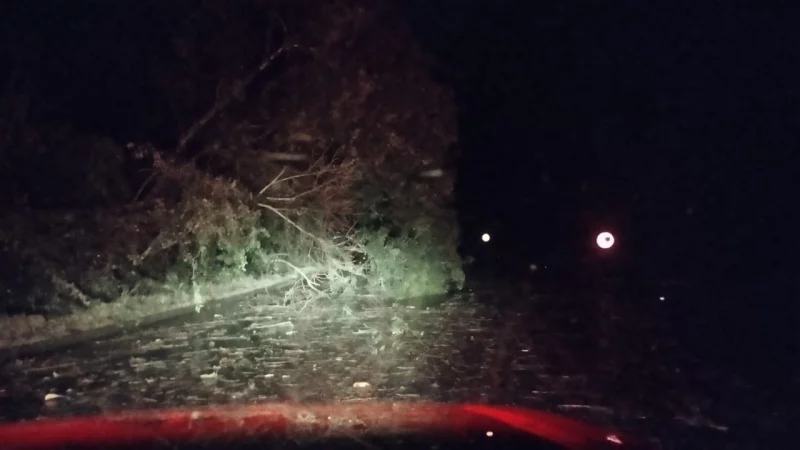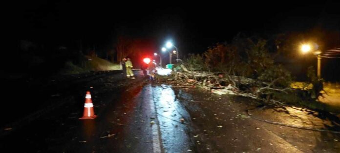 O temporal que atingiu a região no inÃcio da noite da quarta-feira (12) derrubou várias árvores em diversos trechos da SC-453, entre Luzerna e Ibicaré.