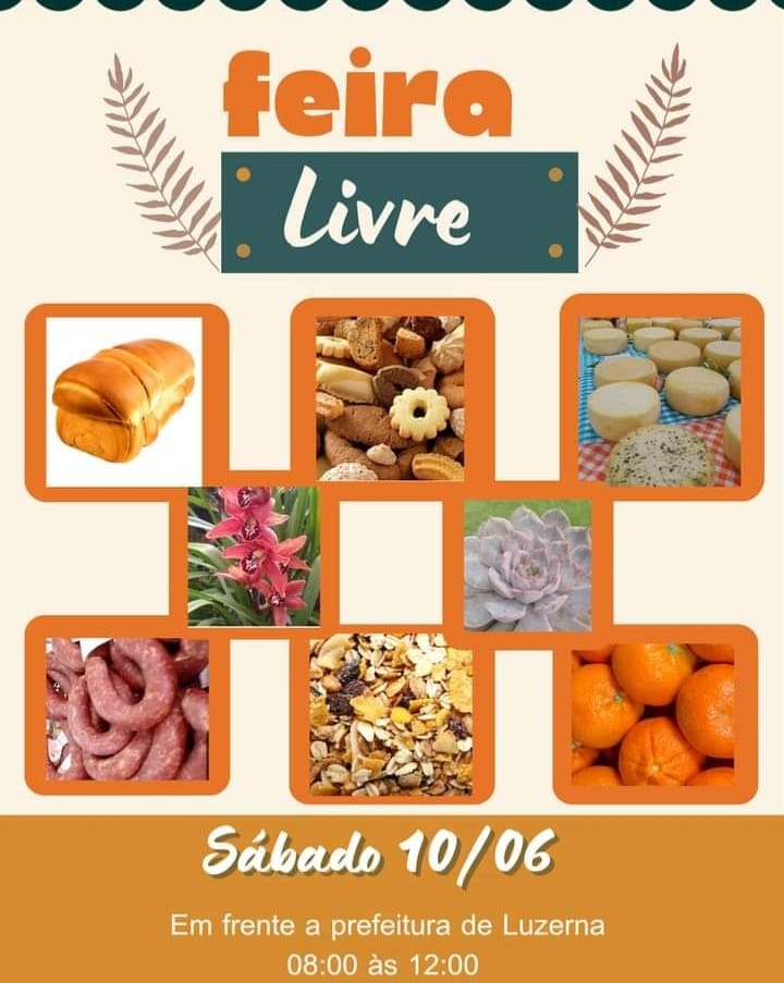 Sábado, dia 10 de junho, das 08:00 às 12:00, em frente a prefeitura de Luzerna tem Feira livre!
