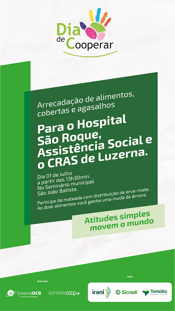 No próximo sábado, dia 01 de julho, o Sicredi, instituição financeira cooperativa com mais de 6 milhões de associados e presença em todos os estados brasileiros e no Distrito Federal, se junta à mobilização do Dia C (Dia de Cooperar), uma iniciativa nacional liderada pela Organização das Cooperativas Brasileiras (OCB), que ocorre sempre no Dia Internacional do Cooperativismo – primeiro sábado de julho, e que busca demonstrar a força do cooperativismo em prol das transformações sociais.