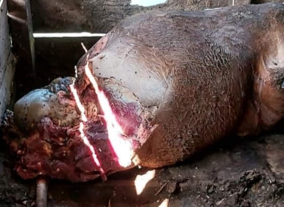Em outra propriedade,desta vez na Linha do Cedro interior do Município de Ibicaré, um animal foi abatido e parte da carne foi levada.