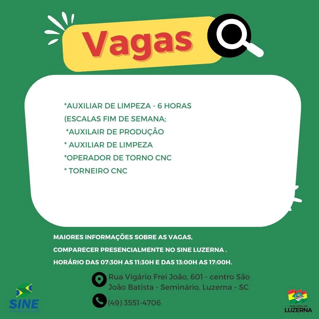 Vagas de emprego no Sine em Luzerna