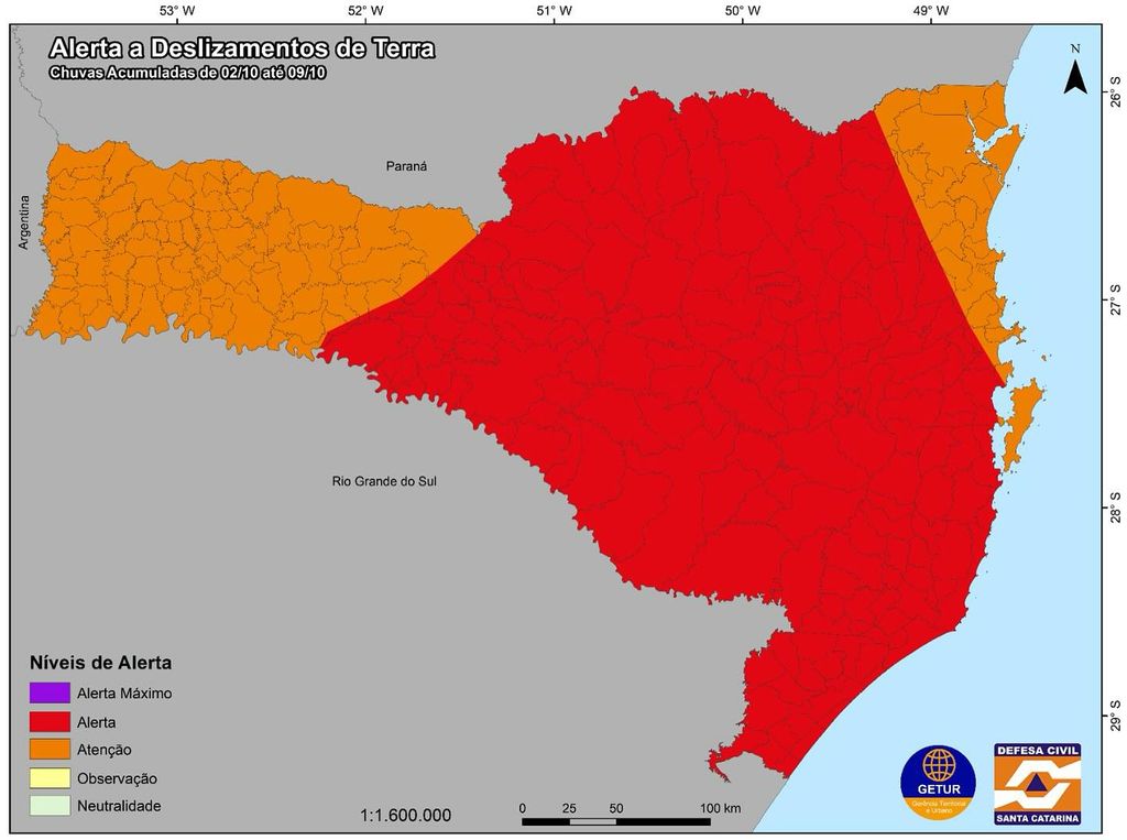 A Defesa Civil de Santa Catarina recomenda que a população fique em alerta para sinais de movimentação no solo, como inclinação de arvores, postes e muros, trincas no solo e nas residências, além de estalos nas encostas e sinais de água vertendo da encosta.